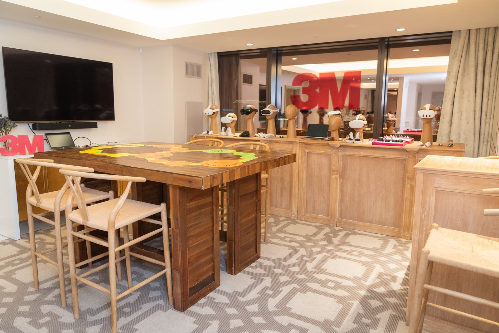 Provide a space for meaningful connections and interactions between product engineers and executive-level clientele from leading companies. Create an engaging environment to showcase 3M’s latest innovations at a retreat away from the bustling CES show floor. Visually express 3M’s culture of homegrown innovation consistently throughout the activation.
